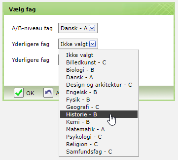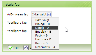 Emne og fag til SSO kan vælges på følgende vis:
