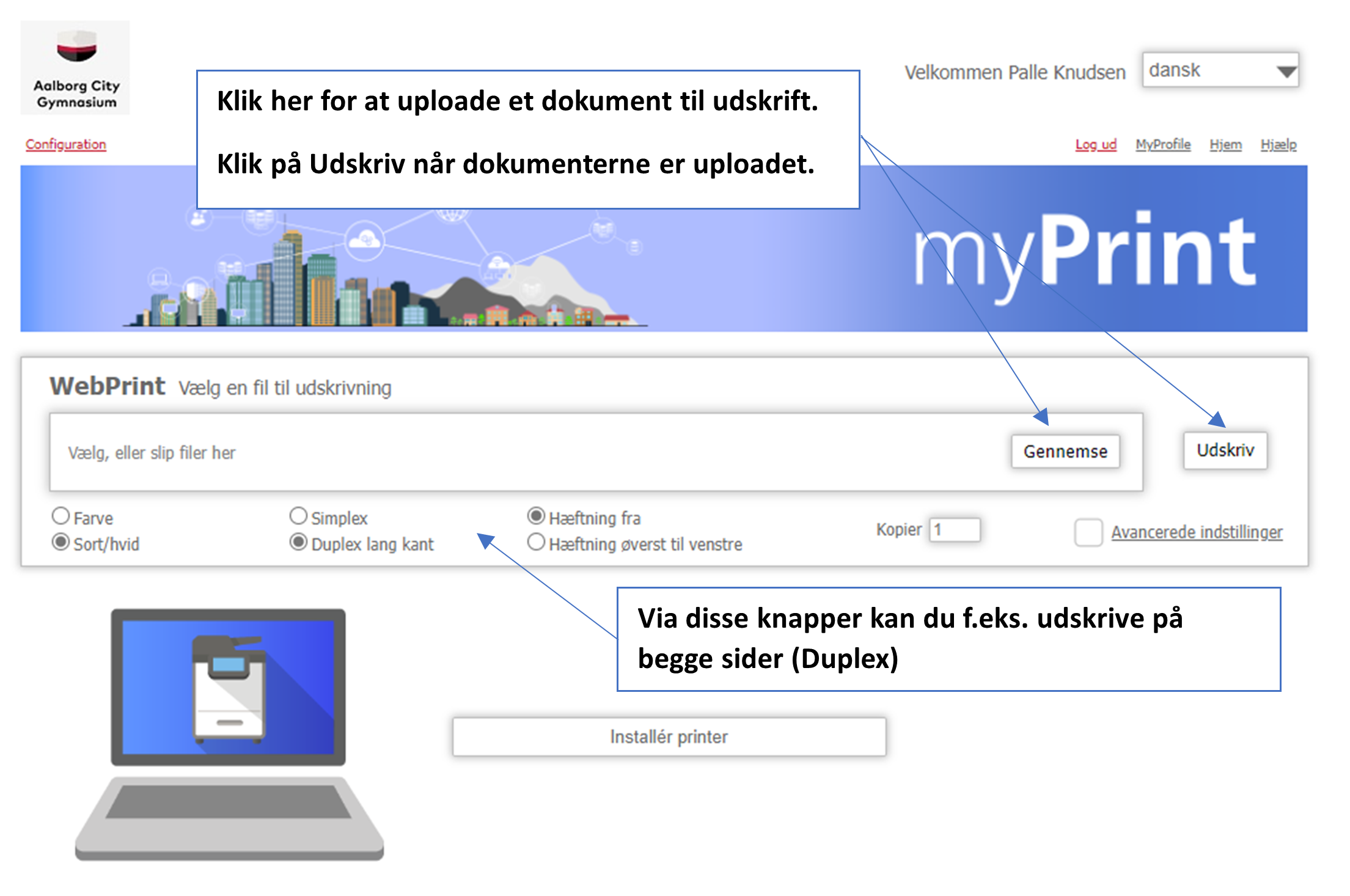 Her er en kort vejledning, som beskriver, hvorledes du kan skrive ud på skolens kopimaskiner. Bemærk dette virker kun, når du er på skolens trådløse netværk.