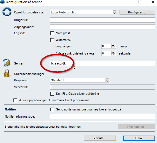 - Klik på ”Gem”. FirstClass er nu sat op og klar til brug
