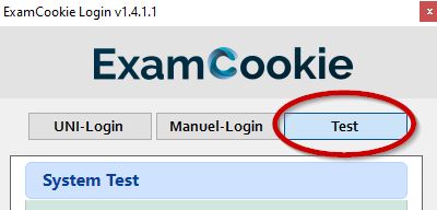 Afslutningsvis kan du teste om ExamCookie virker på din computer. Dette gøre ved at hente ExamCookie og klikke på test-knappen (man kan ikke logge ind før dagen man er til prøve):