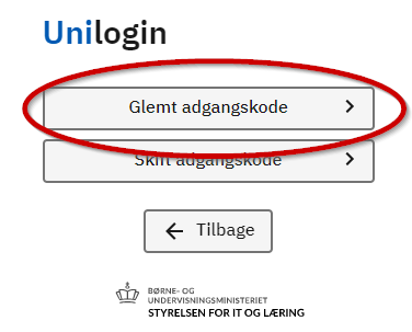 På det efterfølgende skærmbillede skal du klikke på "Glemt adgangskode" |